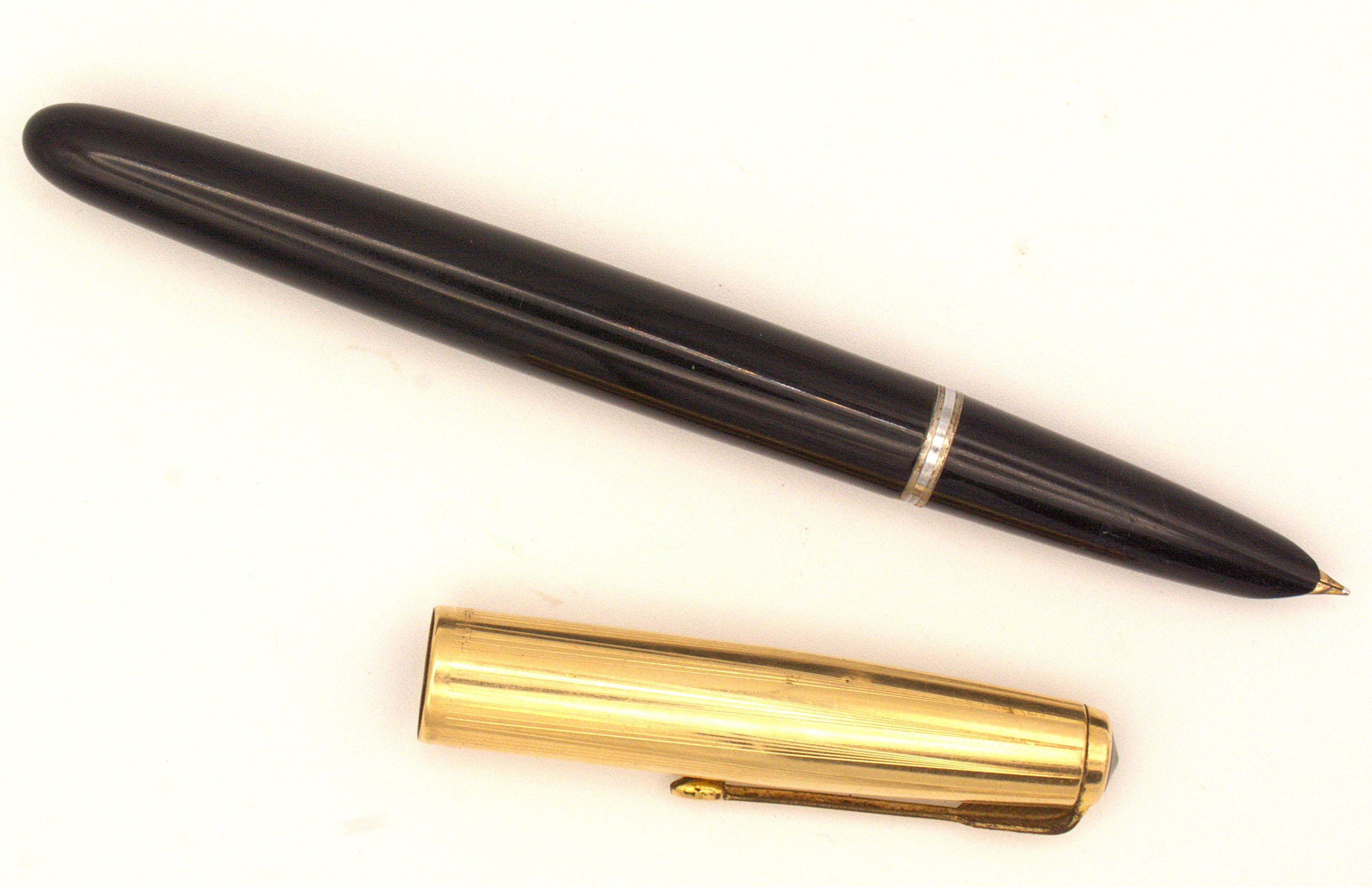 Fusto in resina nera e cappuccio dorato.