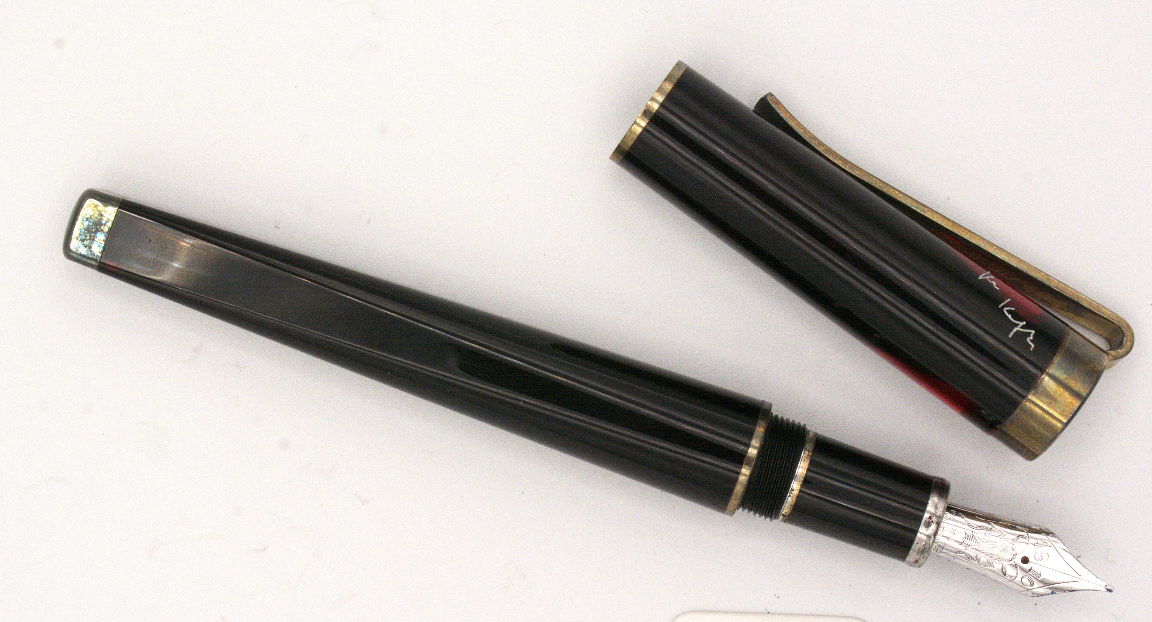 Fusto e cappuccio in resina rossa con clip e anelli in argento sterling 925. La penna presenta un design che passa gradualmente da tondo al cappuccio quadrato alla base, alludendo al capolavoro del grande scrittore La metamorfosi.
