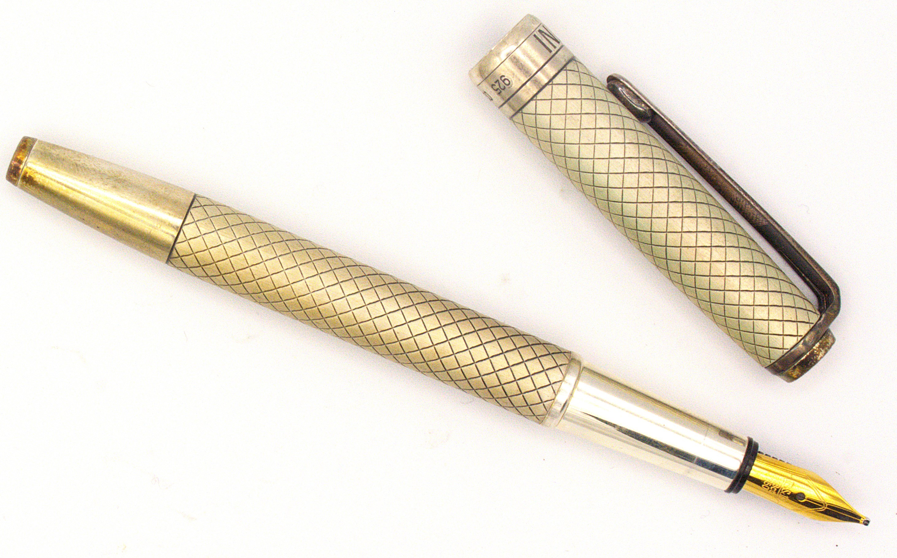 Fusto e cappuccio in argento dorato 925, marcata Torrini alla base del cappuccio, pennino in oro 18kt.