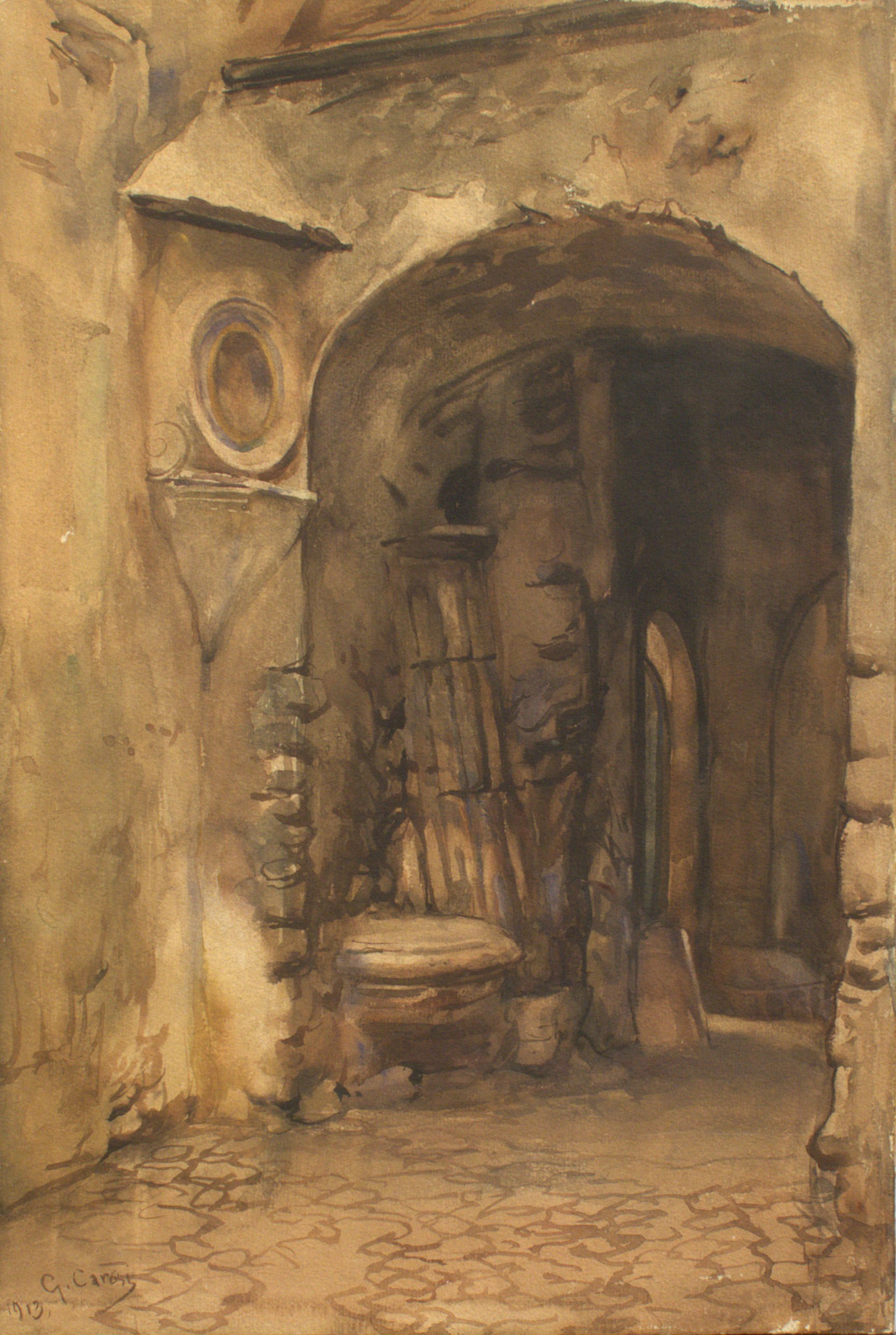 GIUSEPPE CAROSI (ROMA 1883 – 1965), un cortile ( 1913 )