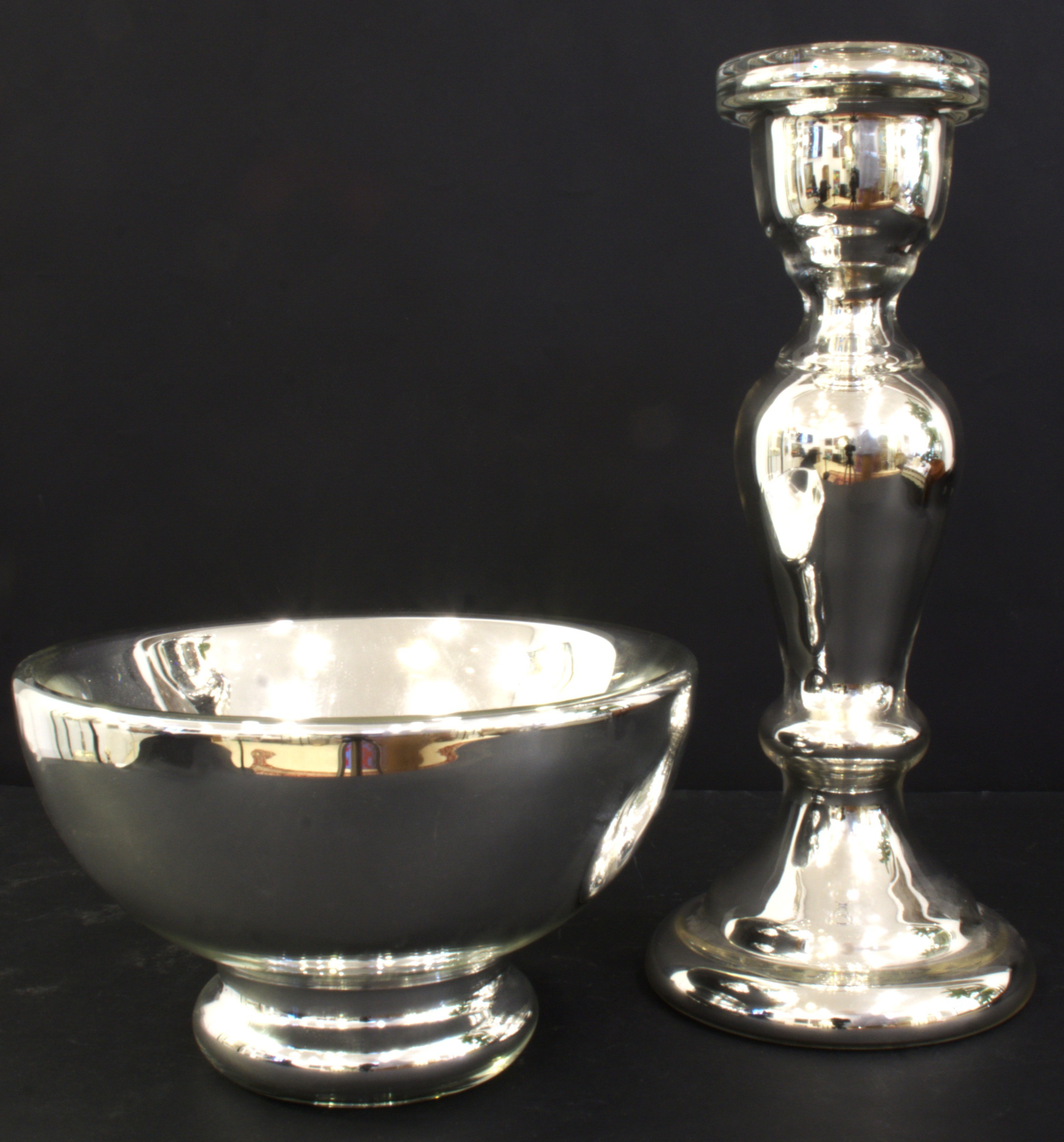 VALENTI & CO, Ciotola e candeliere in lamina d'argento