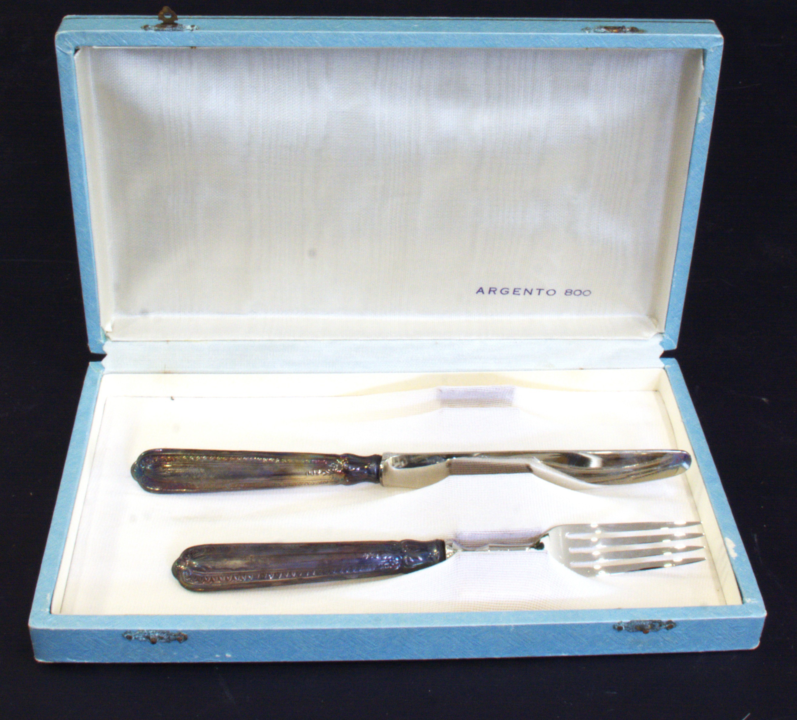 Forchetta e coltello con manico in argento