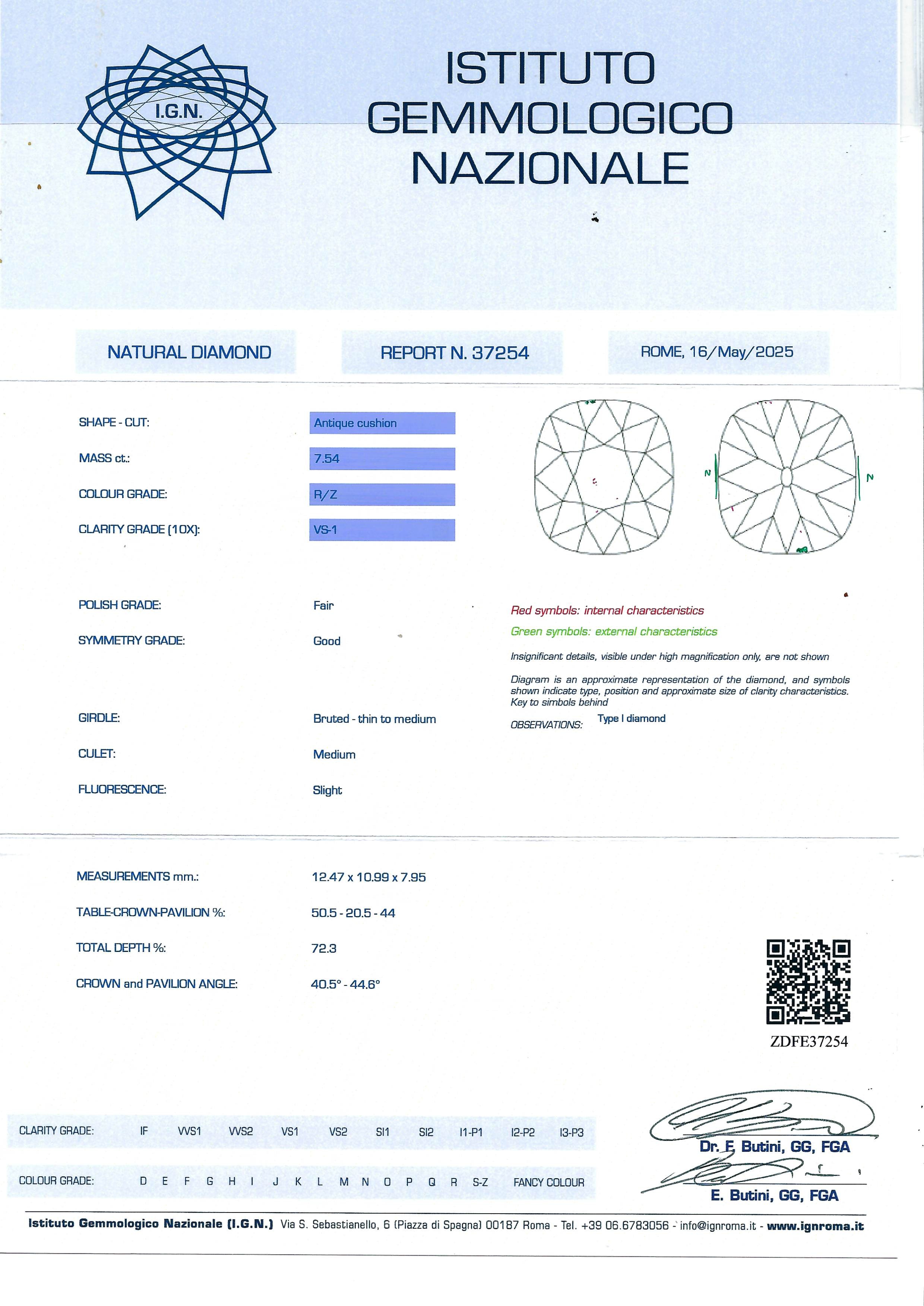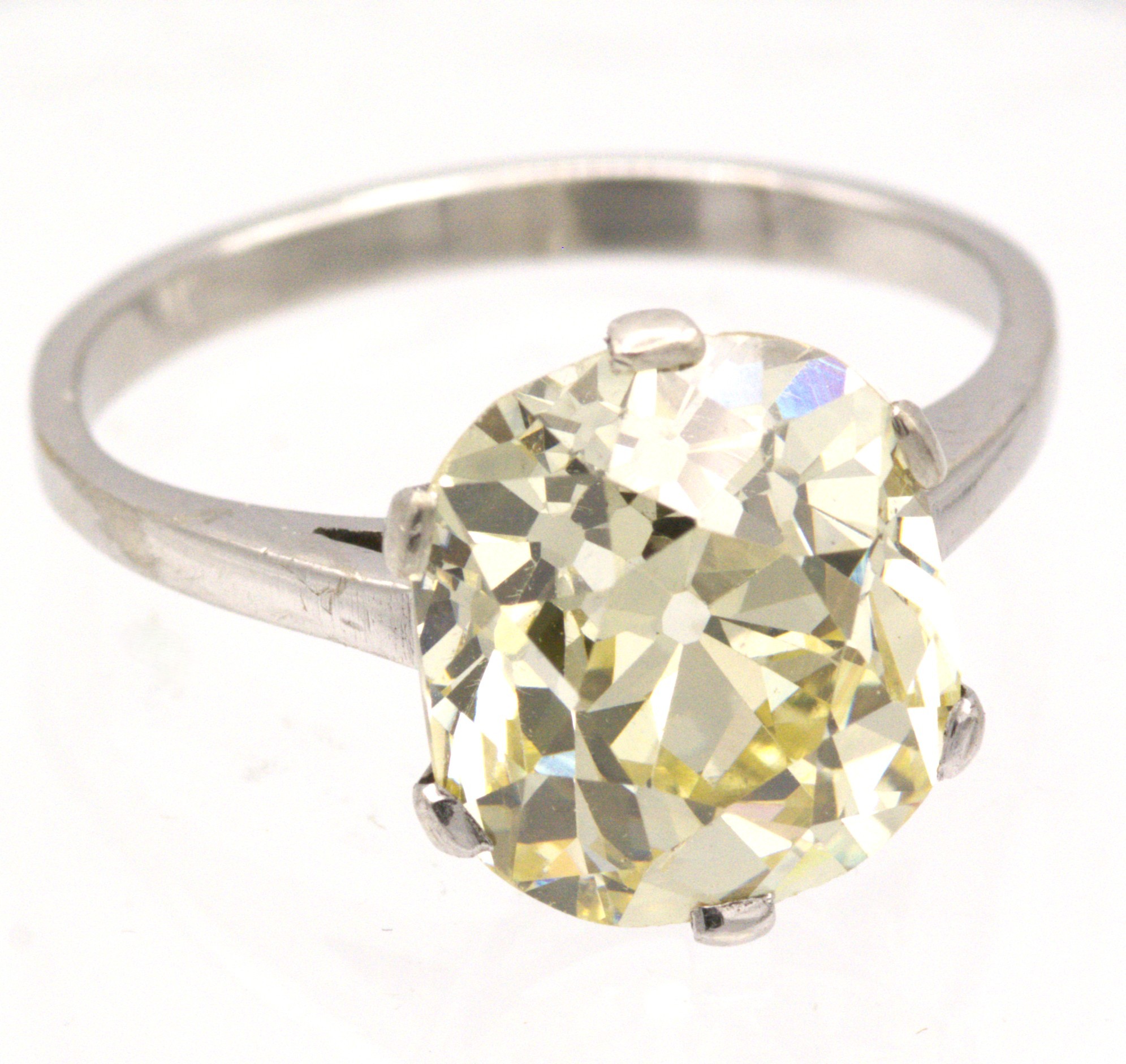 Anello con brillante taglio cuscino cti. 7,54; in oro.