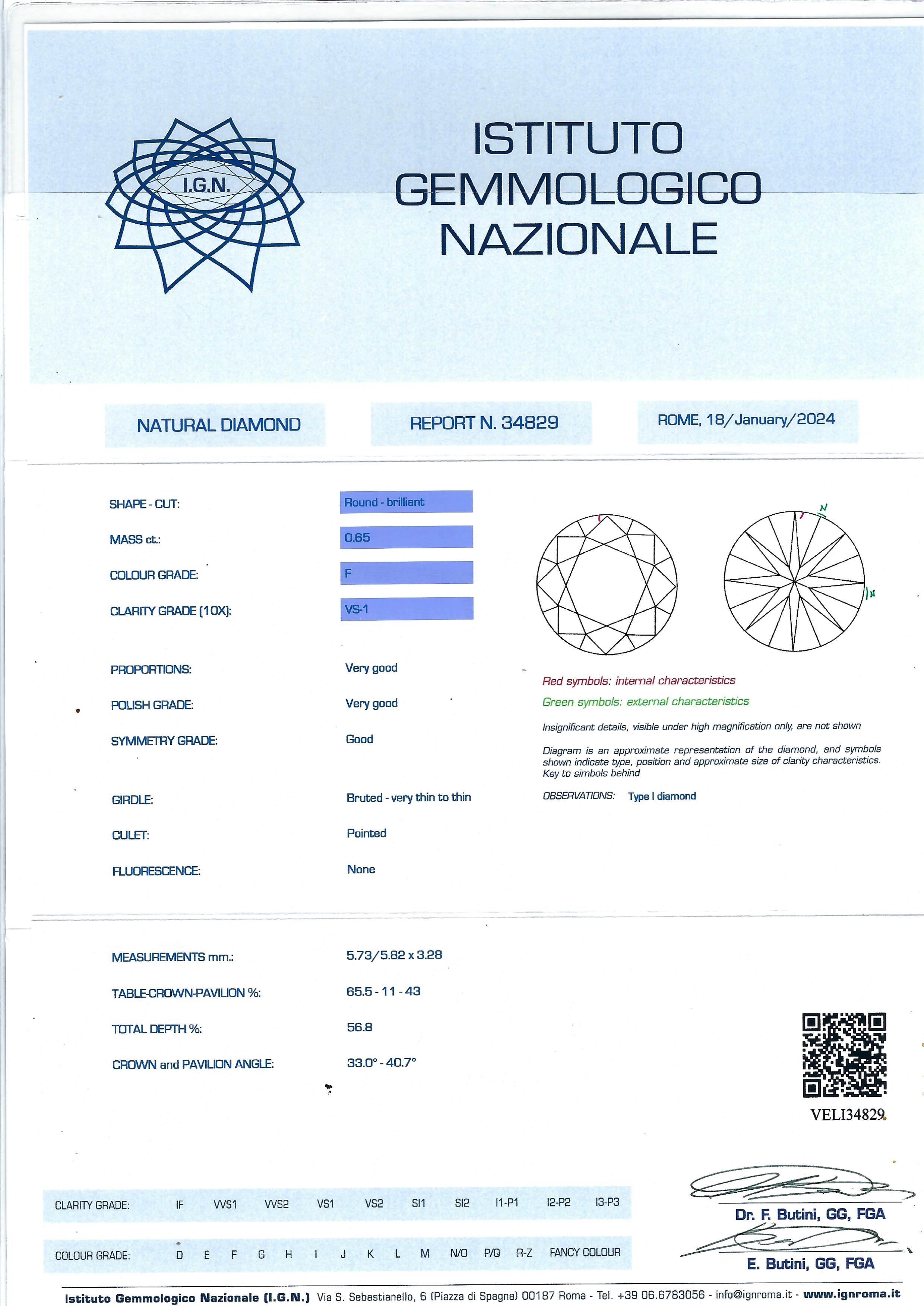 Certificato Gemmologico IGN n° 34829