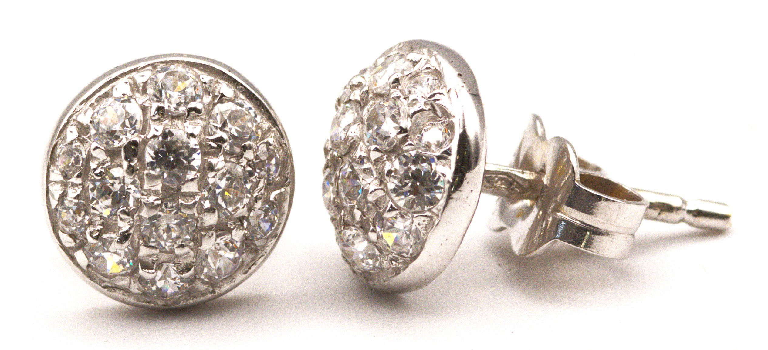 Orecchini a bottone con brillanti. Oro bianco 18 Kt