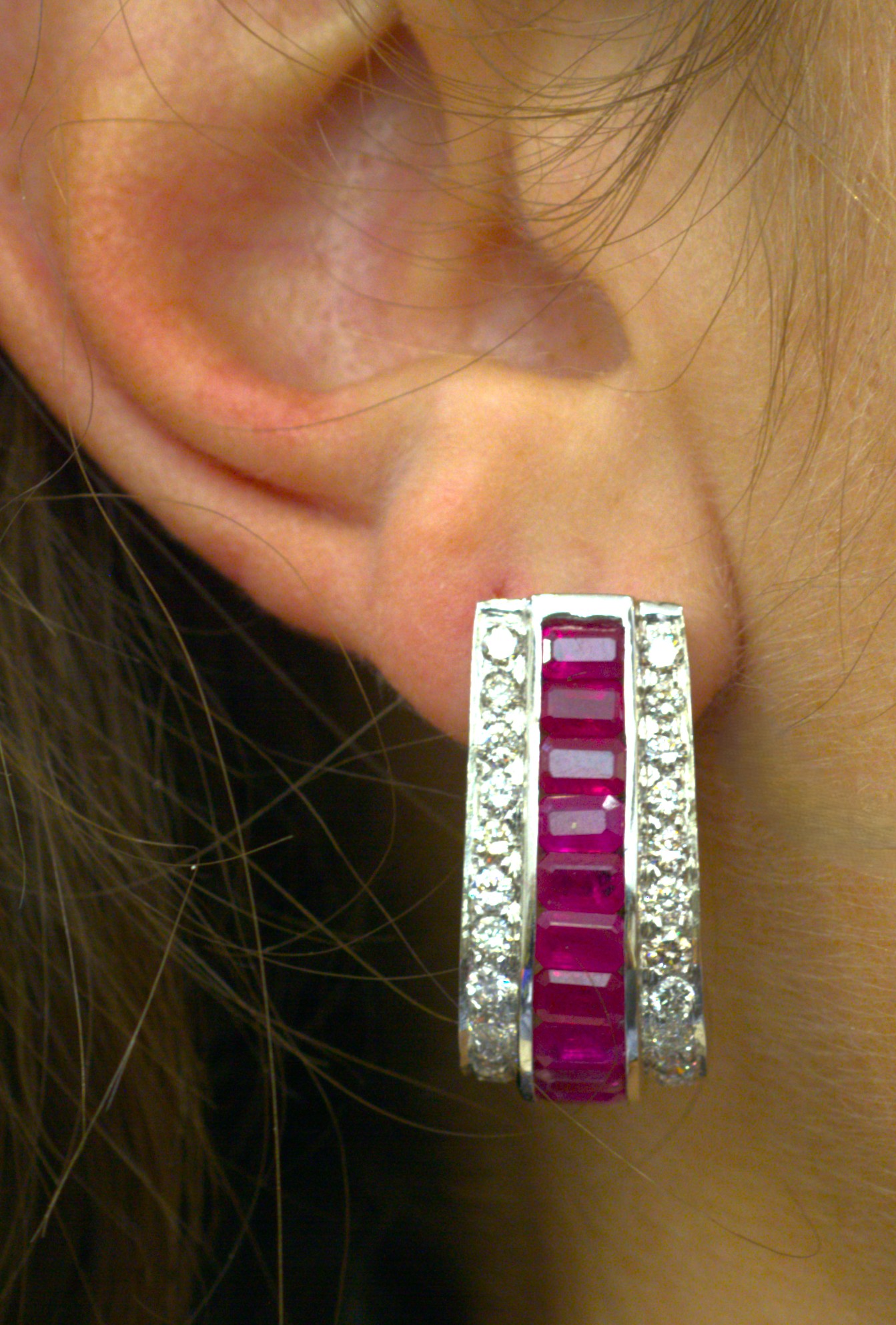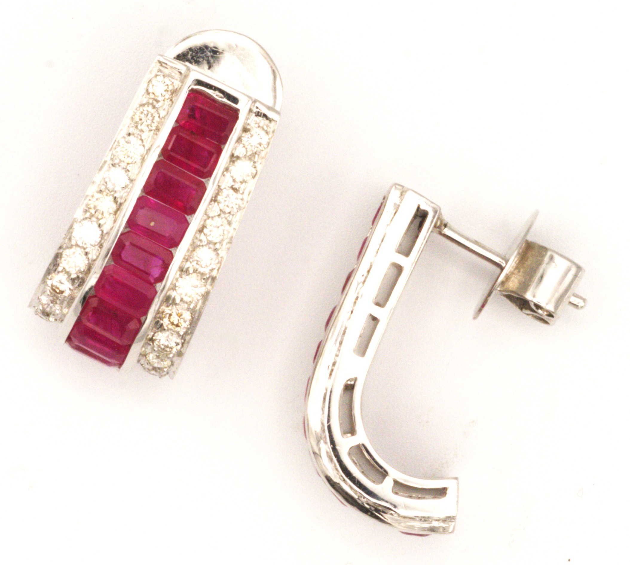 Orecchini rubini e brillanti, oro bianco 18 cti.