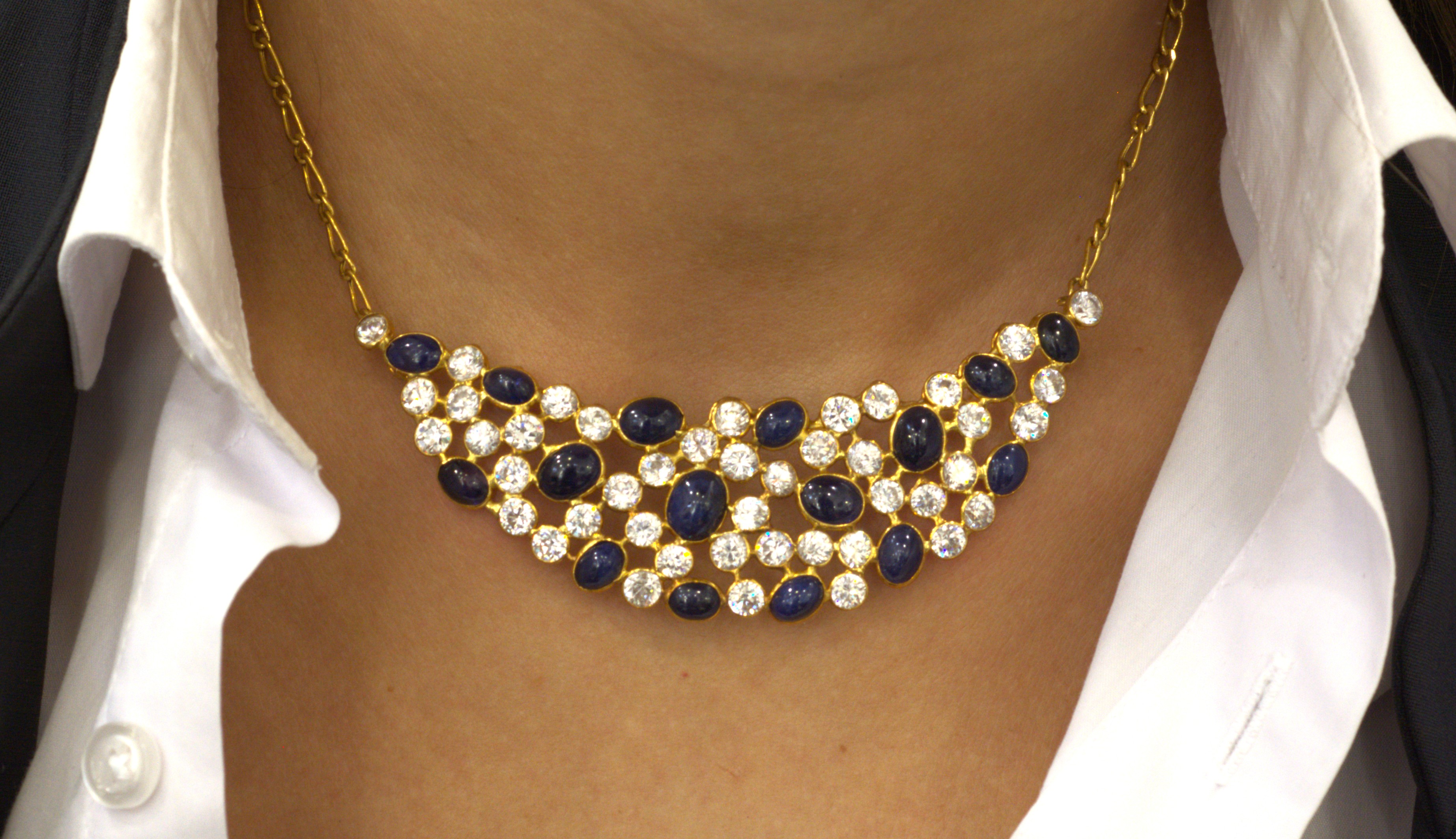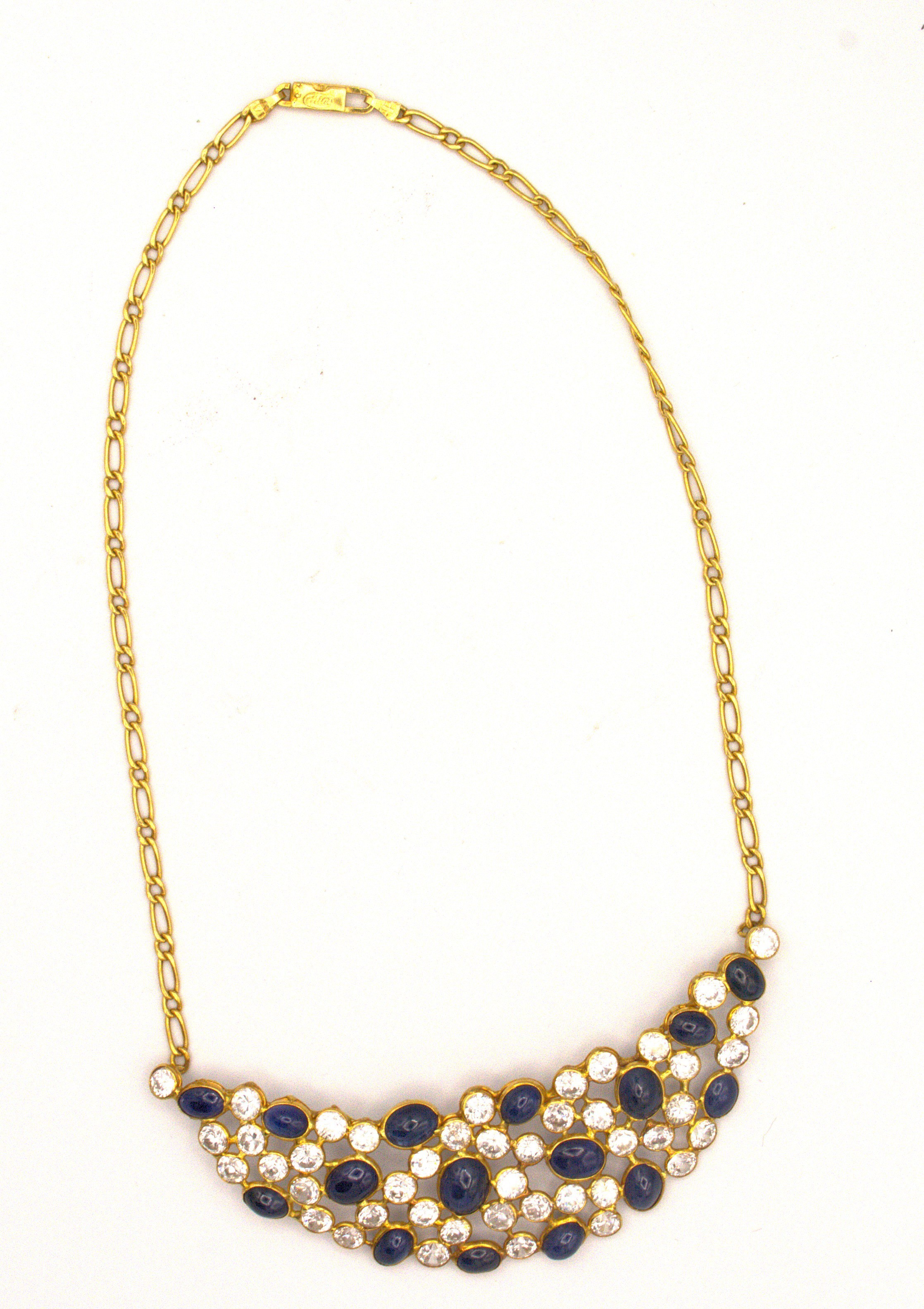 Pettorale in oro 18 kt con pietre bianche e pietre blu cabochon