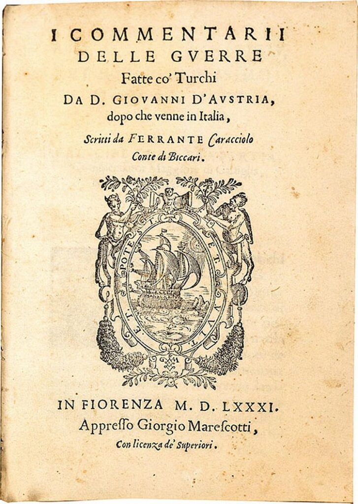 Caracciolo Ferrante, I Commentarii delle Guerre co’ Turchi da d. Giovanni d’Austria dopo che venne in Italia, metà del XVI secolo